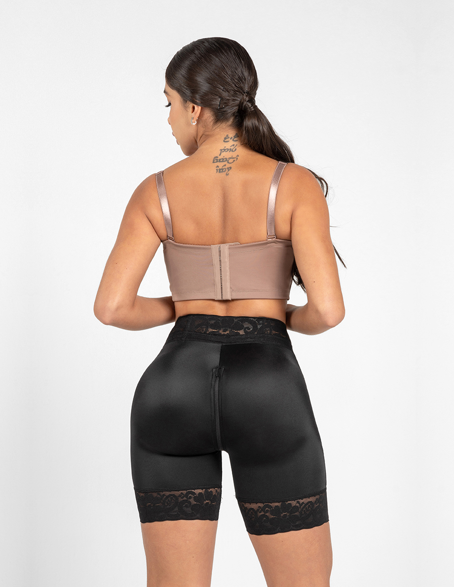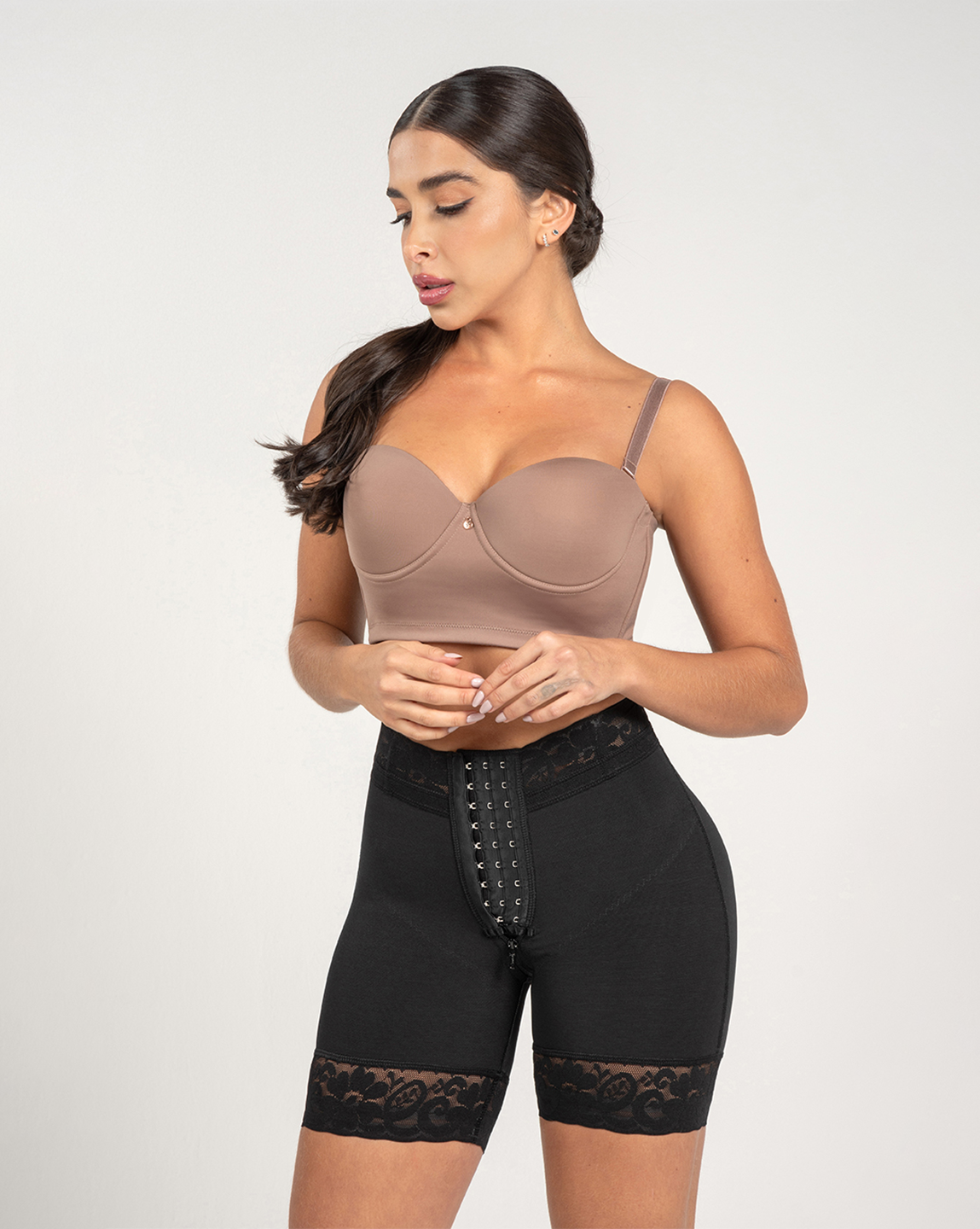 - 3-level adjustable hook-and-eye closure for personalized compression and the perfect fit