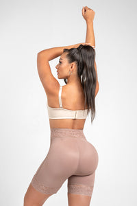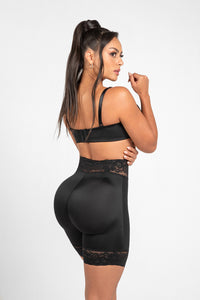 These mid-thigh shorts offer a versatile solution to enhance your confidence. Their mid-thigh length ensures they discreetly complement a range of outfits, while the high compression and butt-lifting feature create a flattering silhouette.