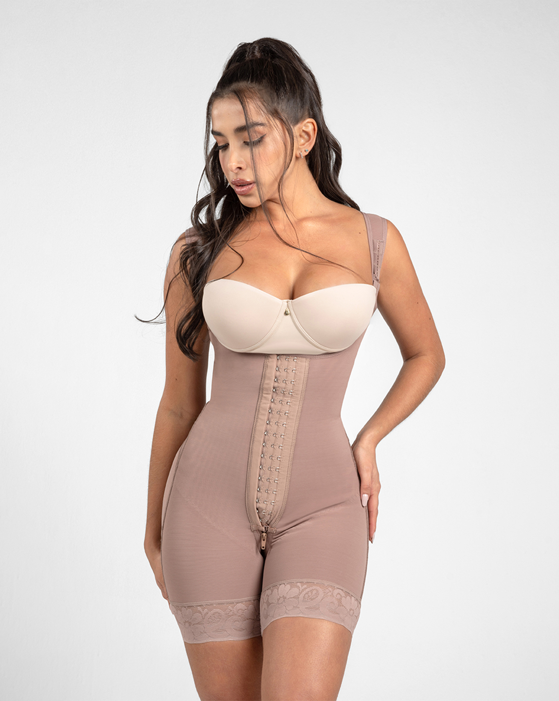This all-in-one bodysuit offers comprehensive support, from enhancing your natural curves to providing strong compression. Designed for comfort and style, it features a high back for posture support, adjustable straps, and a flattering design that seamlessly enhances your figure.