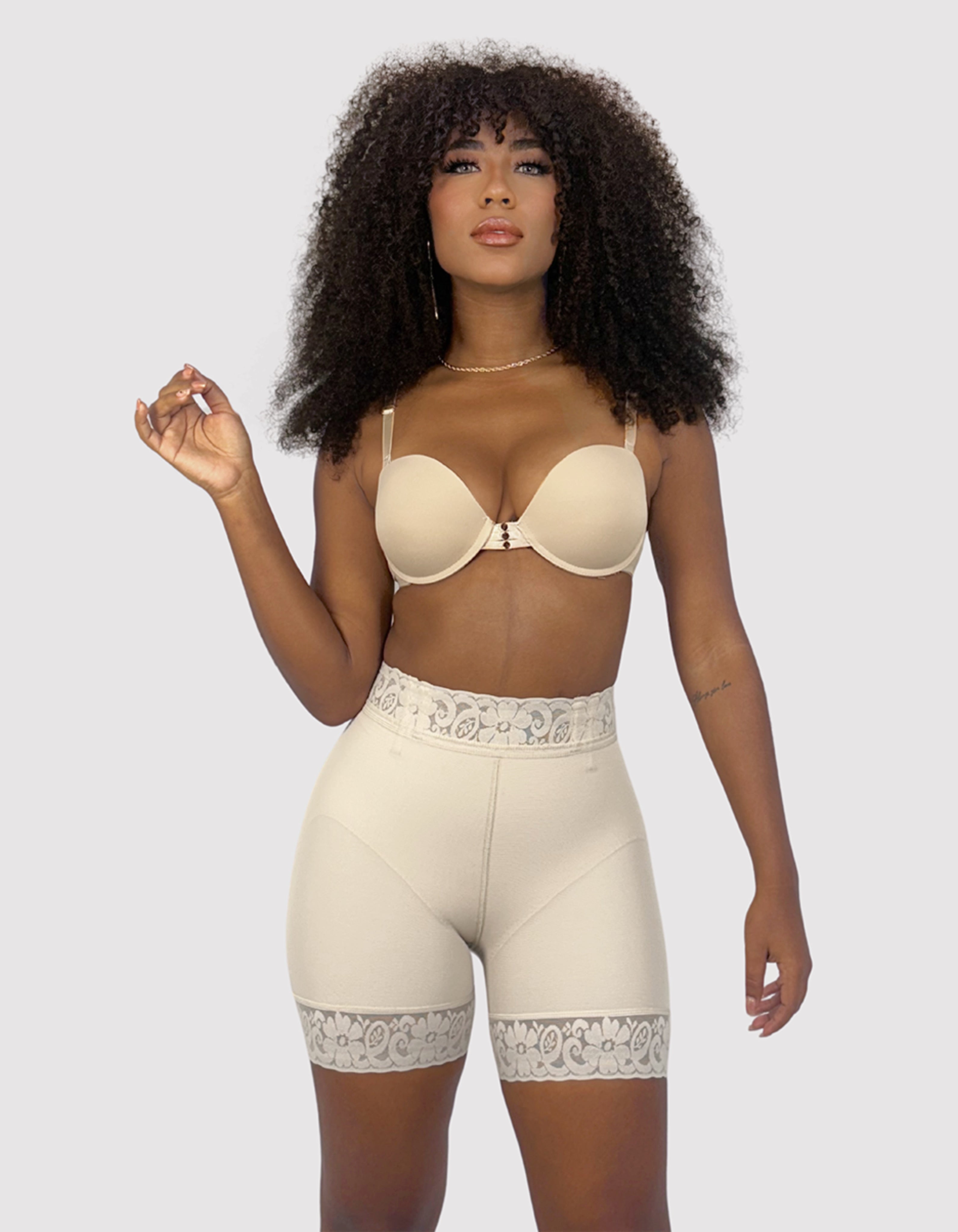 - Internal reinforcement for targeted control of the abdomen, upper hips, and buttocks