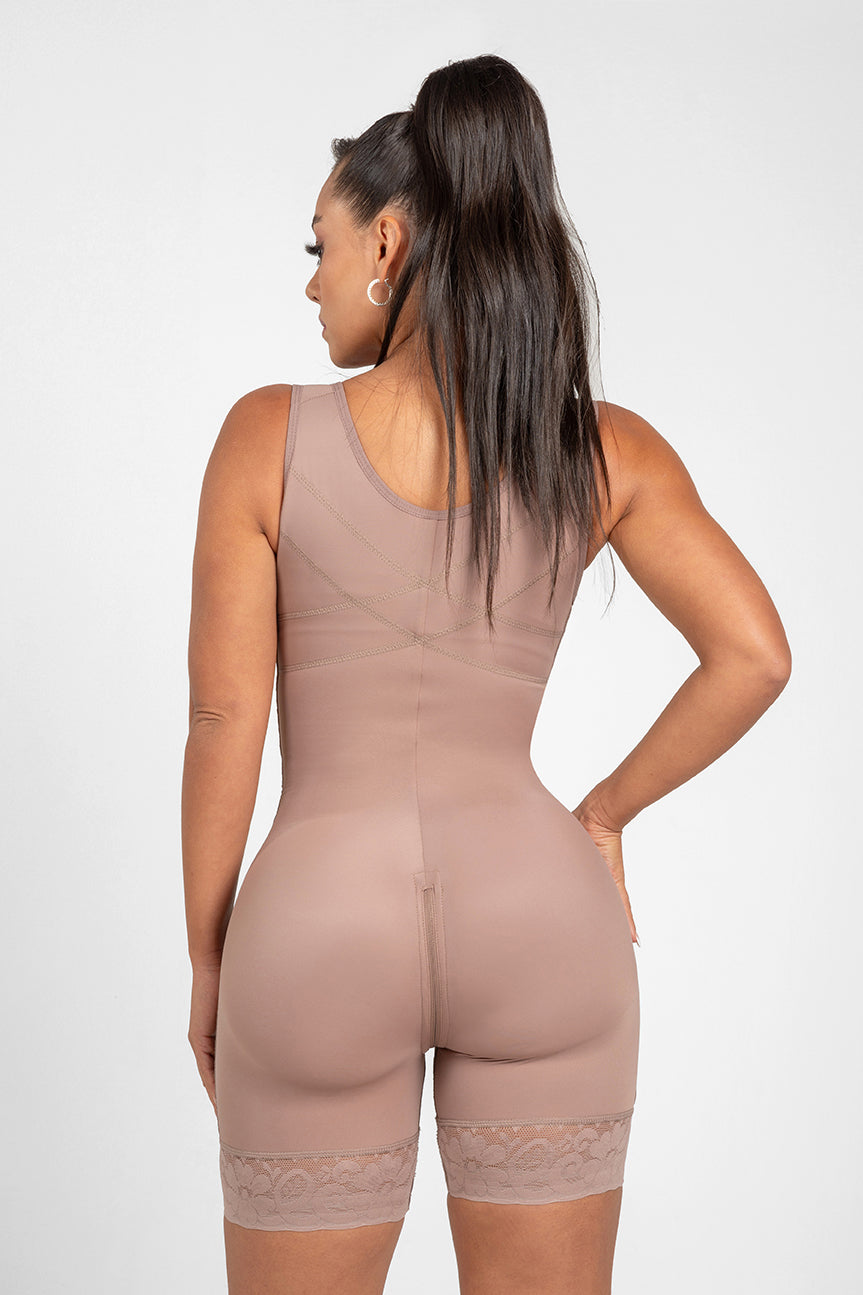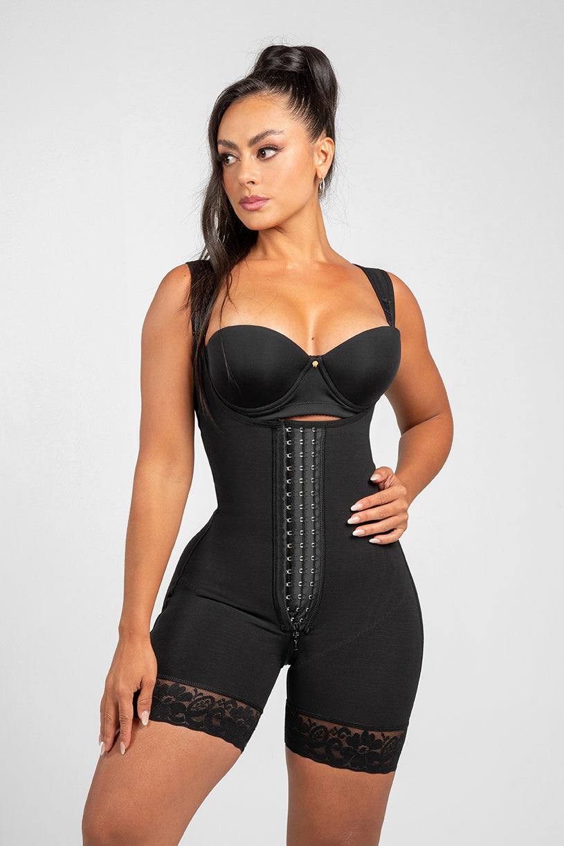 The mid-thigh length is designed for all-day comfort, and the 3-level adjustable hook-and-eye closure allows you to customize the compression.
