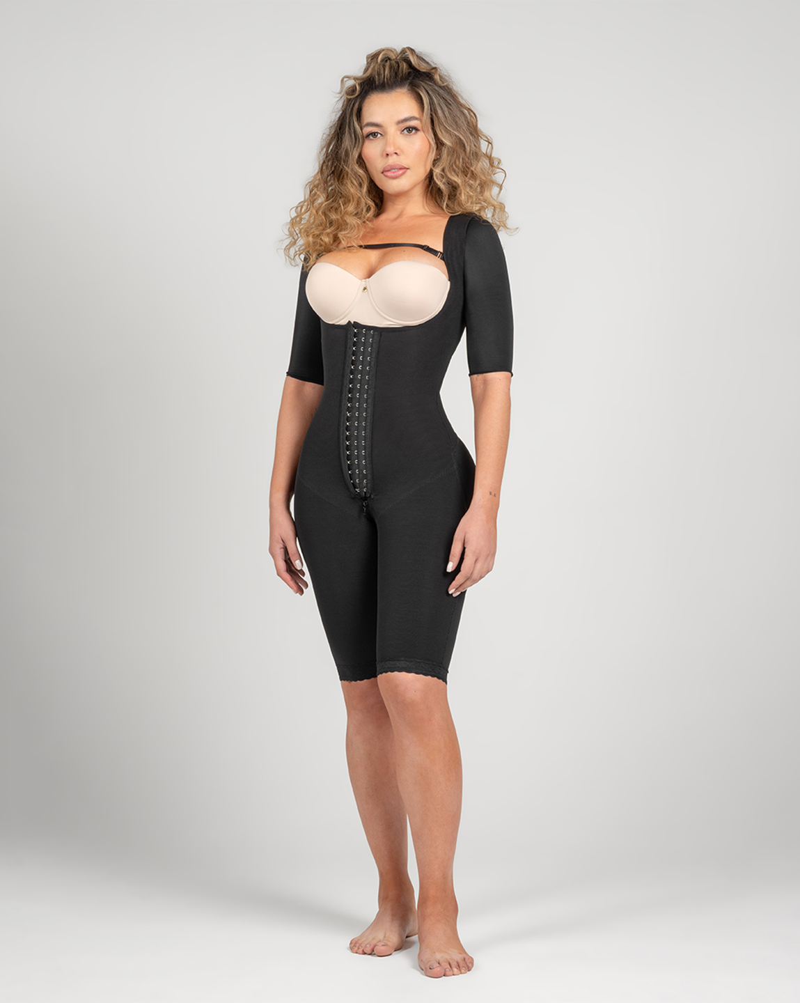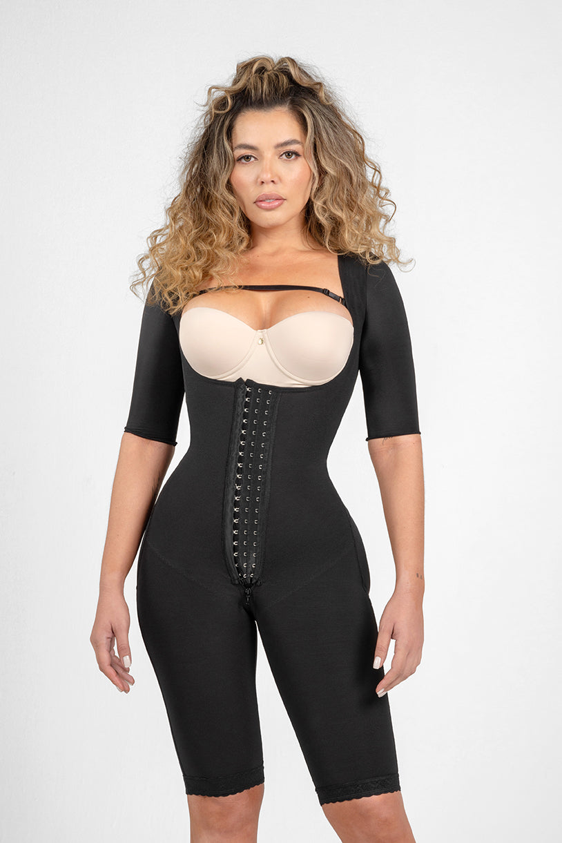 This all in-one faja provides full coverage from your arms down to your thighs, giving you a smooth and seamless silhouette.