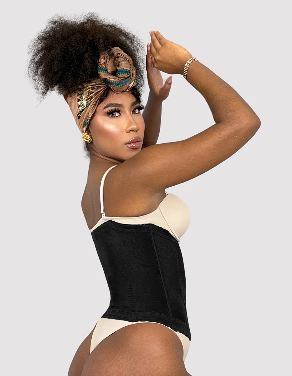 Corset-style waist trainer with total focus on the waist! This cincher will help you achieve the right fit by making you look slimmer and correct your posture at the same time!
